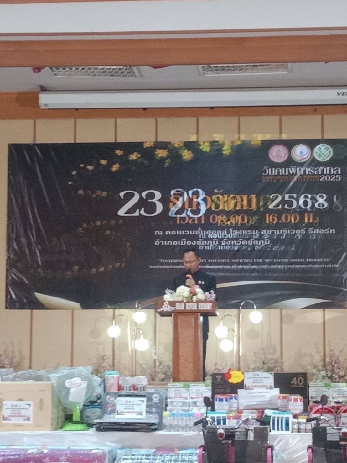 องค์การบริหารส่วนตำบลกวางโจน โดยการนำของนางสาวมลิวรรณ พานตระศรี ปลัดองค์การบริหารส่วนตำบลกวางโจน ปฏิบัติหน้าที่นายกองค์การบริหารส่วนตำบลกวางโจน มอบหมายให้นายนิกร มาละ ผู้อำนวยการกองสวัสดิการสังคม นำผู้พิการเข้าร่วมงานวันคนพิการสากลจังหวัดชัยภูมิ ประจำปี 2568 ณ โรงแรมสยามริเวอร์รีสอร์ทชัยภูมิ เพื่อเป็นการยกระดับคุณภาพชีวิตคนพิการให้มีคุณภาพในสังคมต่อไป