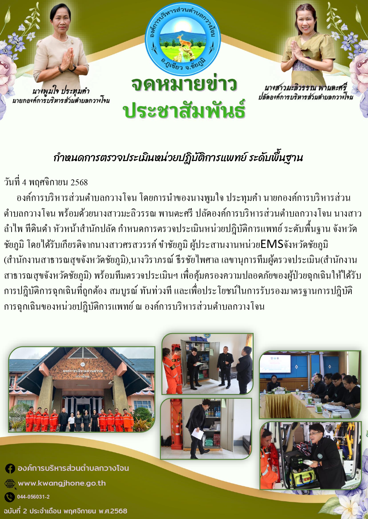 กำหนดการตรวจประเมินหน่วยปฏิบัติการแพทย์ ระดับพื้นฐาน ประจำปี2568 |