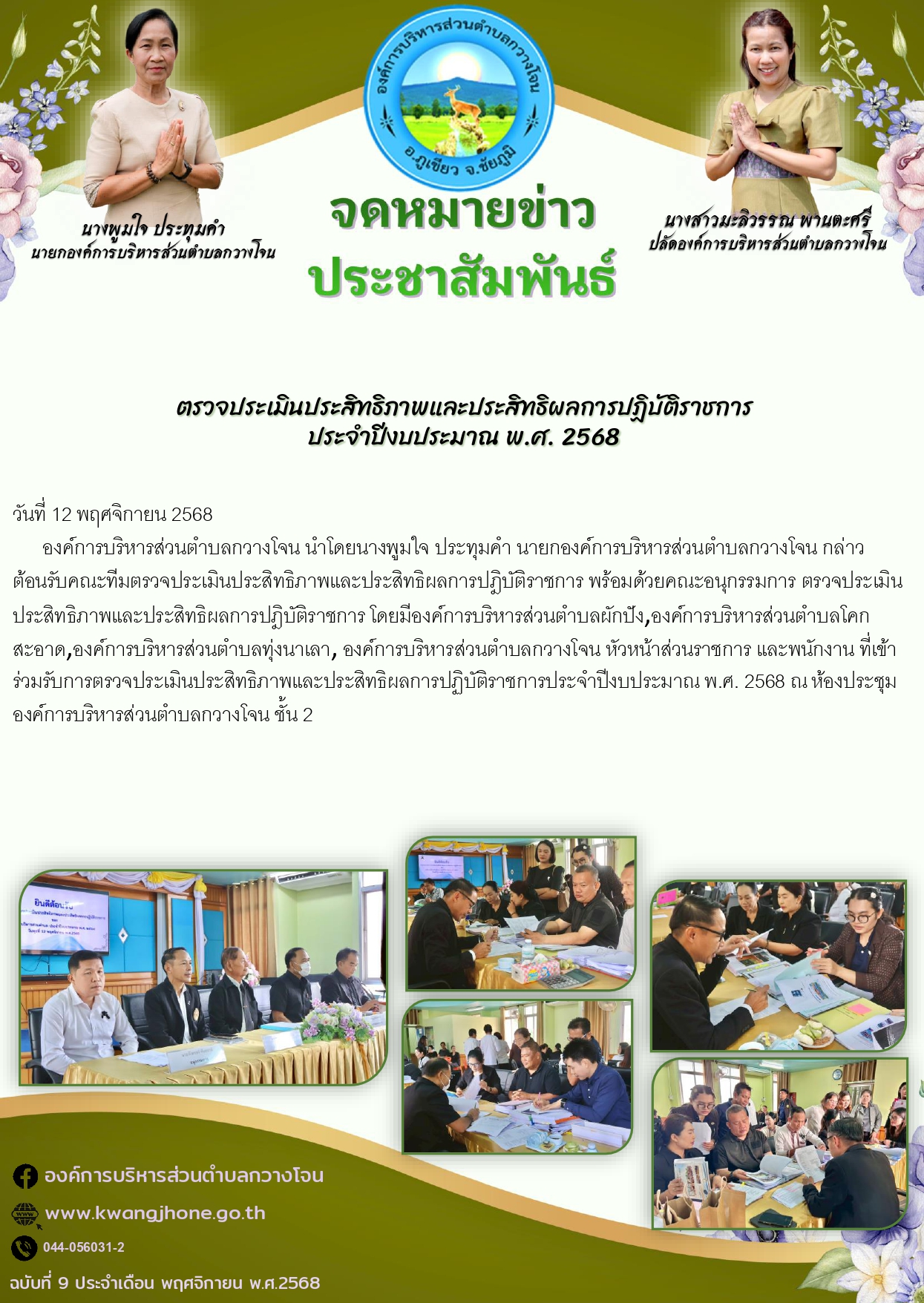 ตรวจประเมินประสิทธิภาพและประสิทธิผลการปฏิบัติราชการประจำปีงบประมาณ พ.ศ. 2568 |