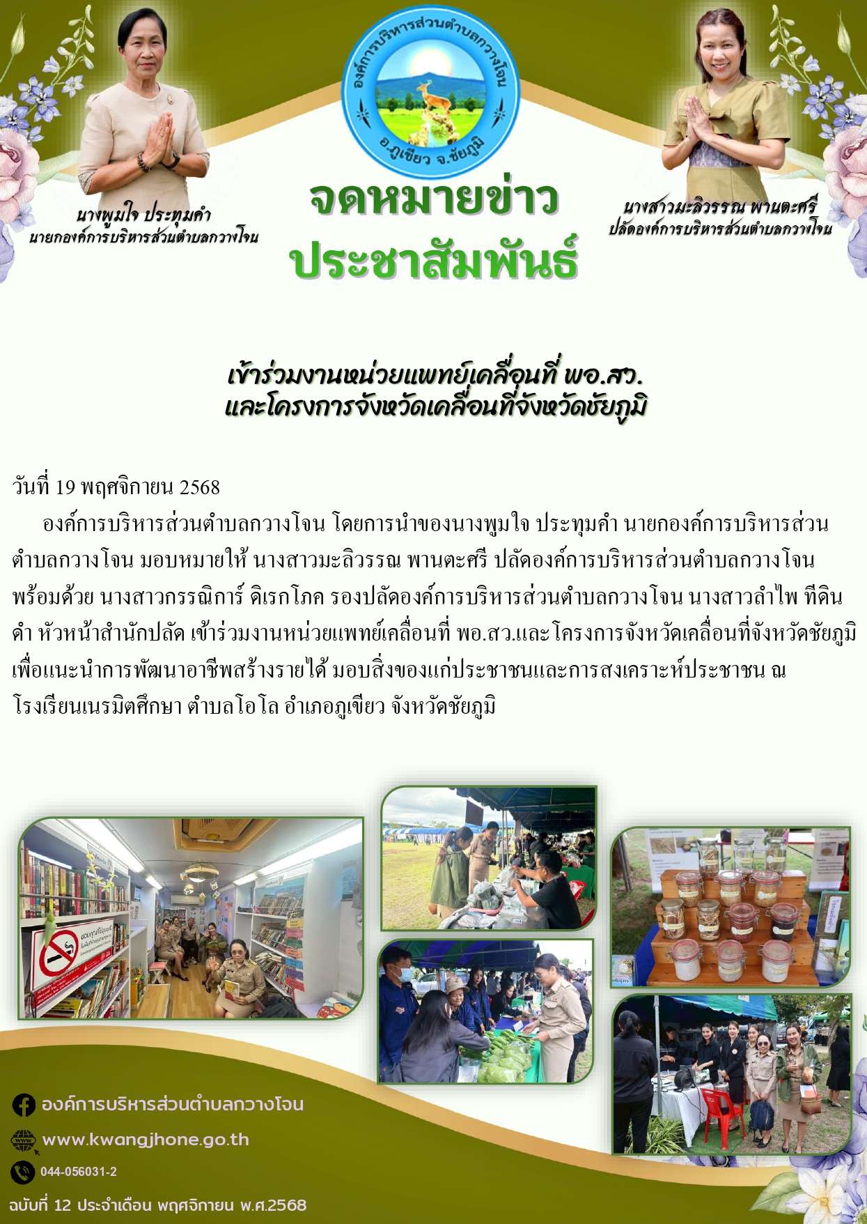 เข้าร่วมงานหน่วยแพทย์เคลื่อนที่ พอ.สว. และโครงการจังหวัดเคลื่อนที่จังหวัดชัยภูมิ |