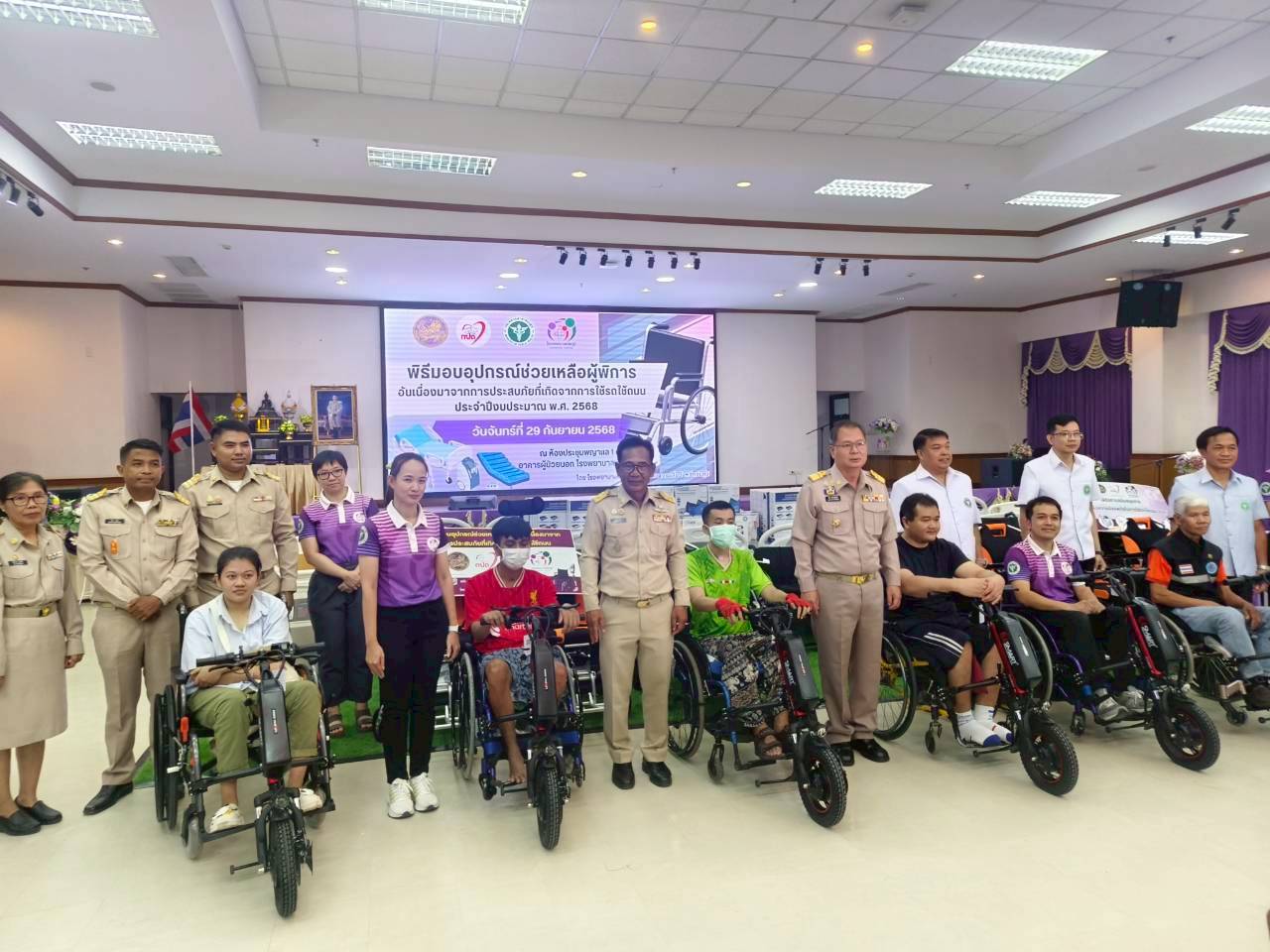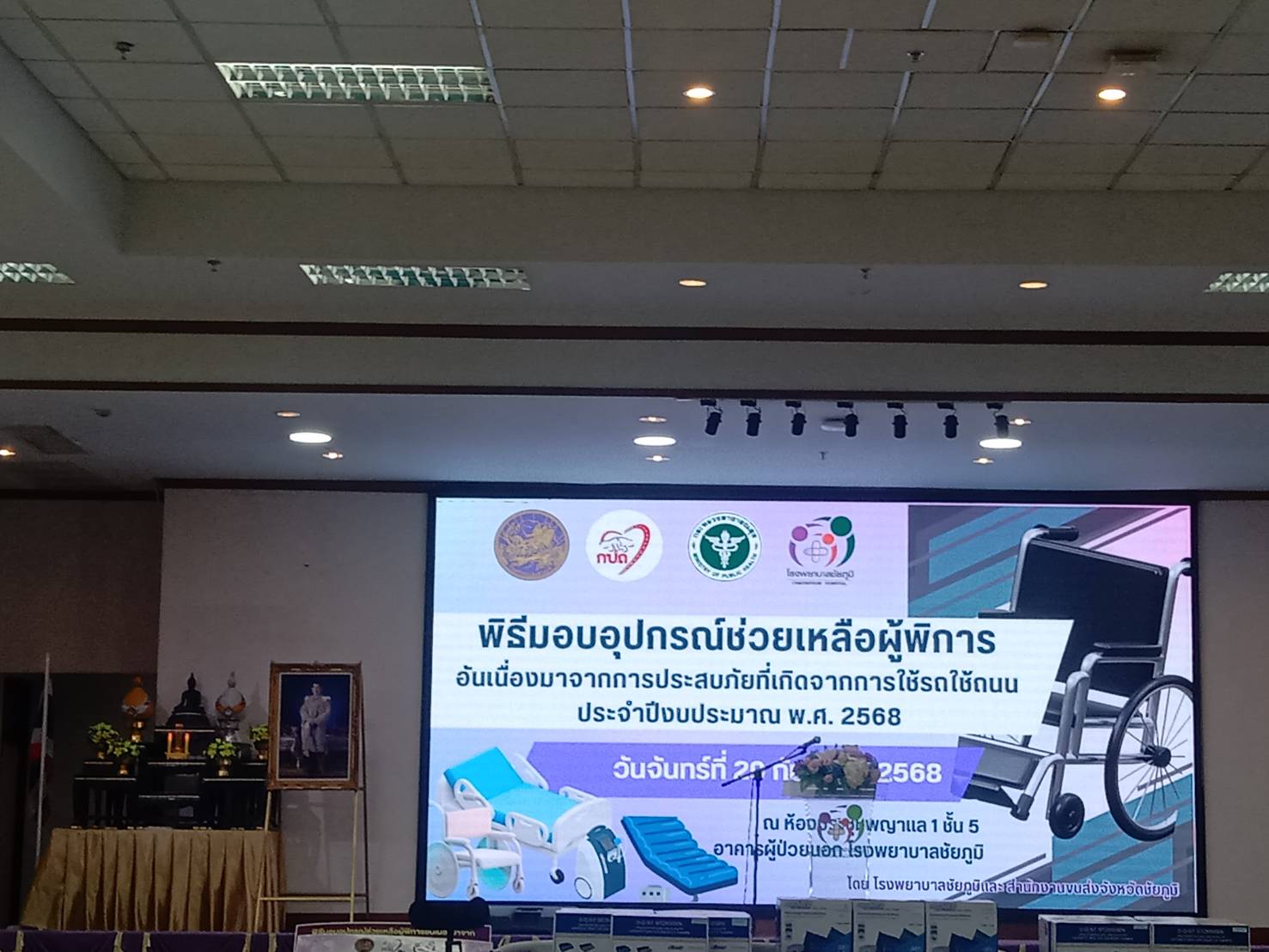 องค์การบริหารส่วนตำบลกวางโจน นำโดยนางพูมใจ ประทุมคำ นายก อบต.กวางโจน พร้อมด้วยคณะผู้บริหาร นางสาวมลิวรรณ พานตะศรี ปลัด อบต.กวางโจน ได้มอบหมายนายนิกร มาละ ผอ.กองสวัสดิการสังคม นายธีรเดช แผ่นทอง ผู้ช่วยเจ้าหน้าที่พัฒนาชุมชน ได้นำผู้พิการในตำบลกวางโจนจำนวนสองคน เข้ารับมอบอุปกรณ์ช่วยเหลือผู้พิการ อันเนื่องมาจากการประสบภัยจากการใช้รถใช้ถนน ประจำปี 2568 ณ โรงพยาบาลชัยภมิ โดยได้รับเกียรติจากท่านธงชัย โอฬารพัฒนะชัย รองผู้ว่าราชการจังหวัดชัยภูมิ ให้เกียรติเป็นประธานในพิธีมอบให้แก่ผู้พิการดังกล่าว
