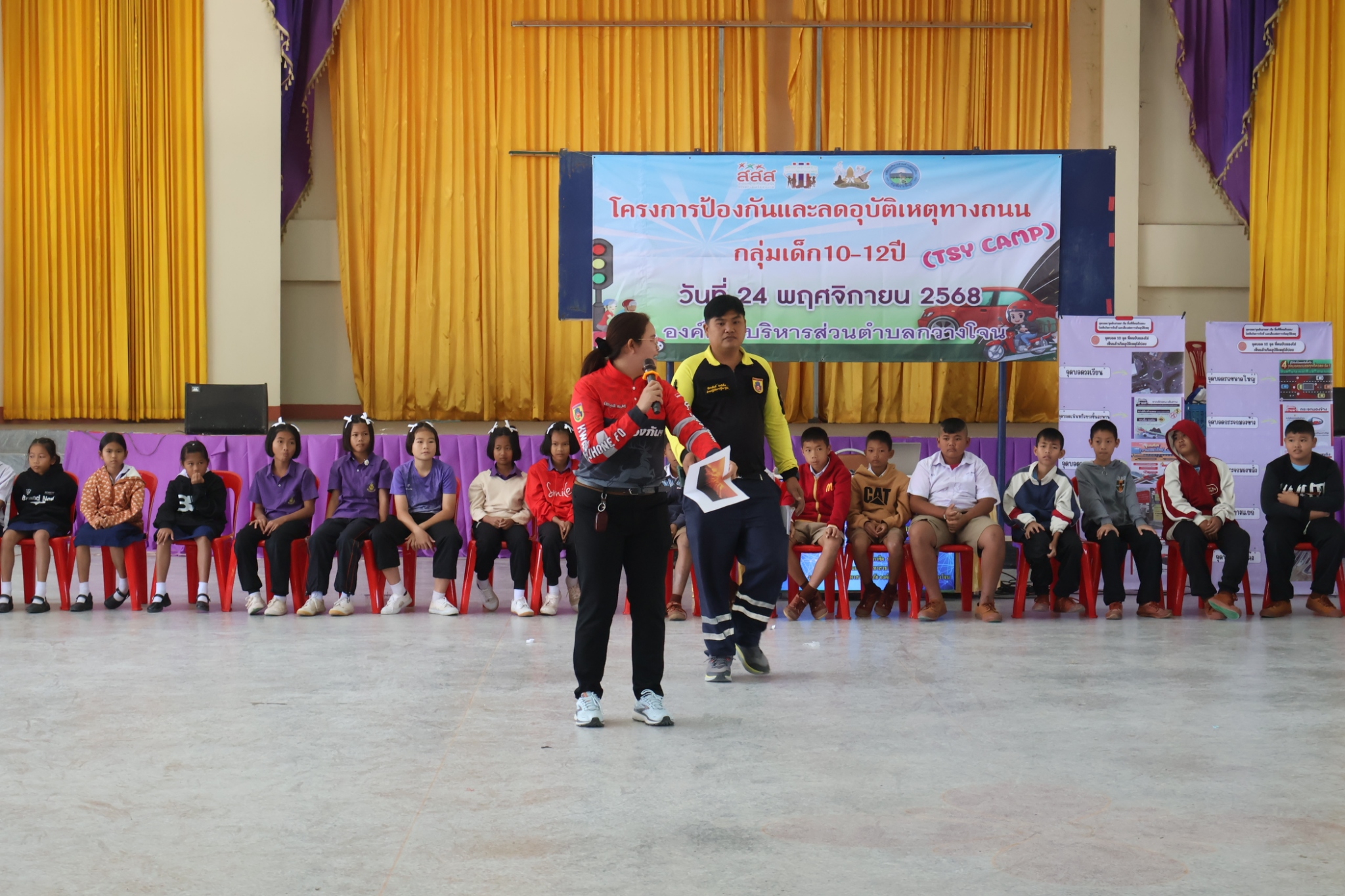 องค์การบริหารส่วนตำบลกวางโจน ได้จัดโครงการป้องกันและลดอุบัติเหตุทางถนน กลุ่มเด็ก 10-12 ปี (TSY CAMP) ประจำปี 2568 ภายใต้โครงการ "เสริมสร้างศักยภาพเครือข่ายชุมชนท้องถิ่นบริหารจัดการภูมินิเวศ" สำนักงานกองทุนสนับสนุนการสร้างเสริมสุขภาพ (สสส.) ณ องค์การบริหารส่วนตำบลกวางโจน โดยนางพูมใจ ประทุมคำ นายกองค์การบริหารส่วนตำบลกวางโจน ได้มอบหมายให้นางสาวมะลิวรรณ พานตะศรี ปลัดองค์การบริหารส่วนตำบลกวางโจน เป็นประธานในพิธีเปิดการฝึกอบรม พร้อมด้วยหัวหน้าส่วนราชการ ผู้อำนวยการสถานศึกษา มีผู้เข้ารับการฝึกอบรมเป็นนักเรียนระดับชั้นประถมศึกษาปีที่ 4-6 จากโรงเรียนในเขตพื้นที่ตำบลกวางโจนทุกแห่งเข้าร่วมฝึกอบรมในครั้งนี้ ซึ่งทำการฝึกอบรมให้ความรู้เกี่ยวกับทักษะการคิด การเอาชีวิตรอดบนท้องถนน การวิเคราะห์จุดเสี่ยงที่มีโอกาสต่อการเกิดอุบัติเหตุทางถนน เรียนรู้ป้ายกฎหมายจราจรข้อบังคับต่างๆ เรียนรู้การเดินเท้าและข้ามถนนอย่างปลอดภัย เรียนรู้การขี่จักรยานอย่างปลอดภัย เรียนรู้จุดบอดและจุดอับสายตา เรียนรู้การสวมใส่หมวกนิรภัยอย่างถูกวิธี เรียนรู้เบอร์โทรฉุกเฉินที่สำคัญเมื่อเจอเหตุการณ์ต่างๆ เพื่อให้กับนักเรียนและเยาวชนผู้เข้าร่วมอบรมได้มีองค์ความรู้เกี่ยวกับการป้องกันอุบัติเหตุทางถนนและขับขี่อย่างไรให้ปลอดภัยต่อตัวเองและผู้อื่น เป็นทักษะชีวิตที่จำเป็นในชีวิตประจำวัน เพื่อลดการตายของเด็กและเยาวชนและวางรากฐานวัฒนธรรมความปลอดภัยที่เริ่มต้นตั้งแต่วัยเด็กและเยาวชนที่จะเติบโตเป็นผู้ใหญ่ในอนาคตอย่างยั่งยืน