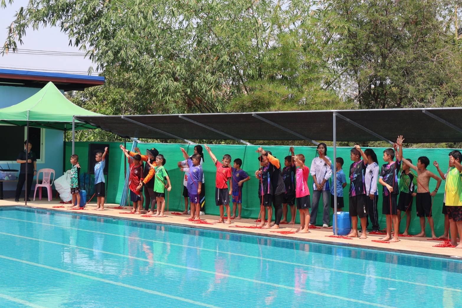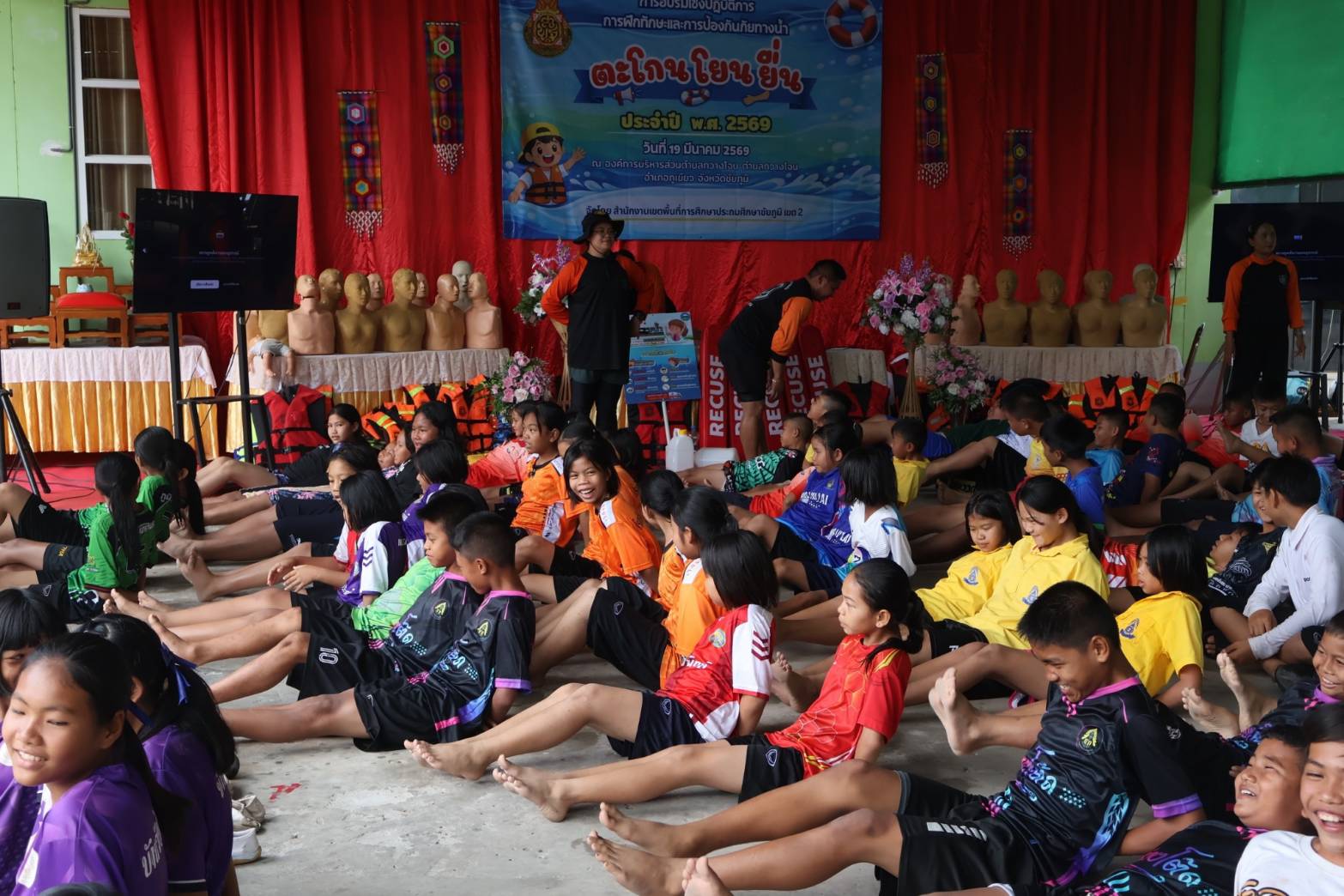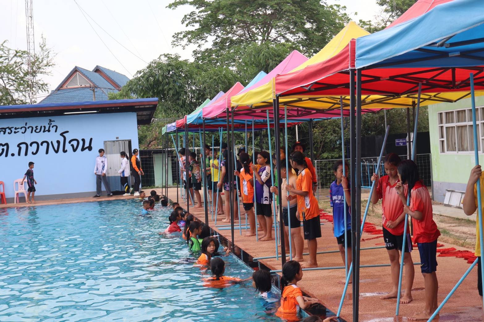 ศูนย์ฝึกอบรมการป้องกันเด็กจมน้ำ องค์การบริหารส่วนตำบลกวางโจน กวางโจนเพนกวิน ส่งเสริมความปลอดภัย เด็กไทยไม่จมน้ำ โดยการนำของ นายจักรพันธ์ เหล่ามะลึก นายกองค์การบริหารส่วนตำบลกวางโจน และนางสาวมะลิวรรณ พานตะศรี ปลัดองค์การบริหารส่วนตำบลกวางโจน ได้จัดทีมวิทยากรให้ความรู้เกี่ยวกับการป้องกันเด็กจมน้ำ ณ ศูนย์ฝึกป้องกันเด็กจมน้ำ องค์การบริหารส่วนตำบลกวางโจน ซึ่งทางสำนักงานเขตพื้นที่การศึกษาประถมศึกษาชัยภูมิ เขต 2 ได้จัดโครงการอบรมเชิงปฏิบัติการฝึกทักษะชีวิตและการป้องกันภัยทางน้ำ ภายใต้หลัก “ตะโกน โยน ยื่น” ประจำปี 2569 ซึ่งมีนายอภิชัย ซาซุม ผู้อำนวยการสำนักงานเขตพื้นที่การศึกษาประถมศึกษาชัยภูมิ เขต 2 เป็นประธานในพิธีเปิดโครงการฝึกอบรม พร้อมด้วยหัวหน้าส่วนราชการของสำนักงานเขตพื้นที่การศึกษาประถมศึกษาชัยภูมิ เขต 2 โดยนายจักรพันธ์ เหล่ามะลึก นายกองค์การบริหารส่วนตำบลกวางโจน พร้อมด้วยคณะผู้บริหาร หัวหน้าส่วนราชการพนักงานเจ้าหน้าที่ ขององค์การบริหารส่วนตำบลกวางโจน ร่วมให้การต้อนรับในการฝึกอบรม ทำการฝึกอบรมให้ความรู้ให้นักเรียน ทั้งหมด 16 โรงเรียน ในสังกัดสำนักงานเขตพื้นที่การศึกษาประถมศึกษาชัยภูมิ เขต 2 จำนวน 96 คน ในเรื่องของหลักความปลอดภัยทางน้ำ ฝึกปฏิบัติการเอาชีวิตรอดในน้ำ ฝึกปฏิบัติการช่วยเหลือผู้ประสบภัยทางน้ำ ฝึกปฏิบัติการช่วยฟื้นคืนชีพ (CPR) โดยทีมครูฝึก/วิทยากร จากเครือข่ายป้องกันการจมน้ำตำบลกวางโจน