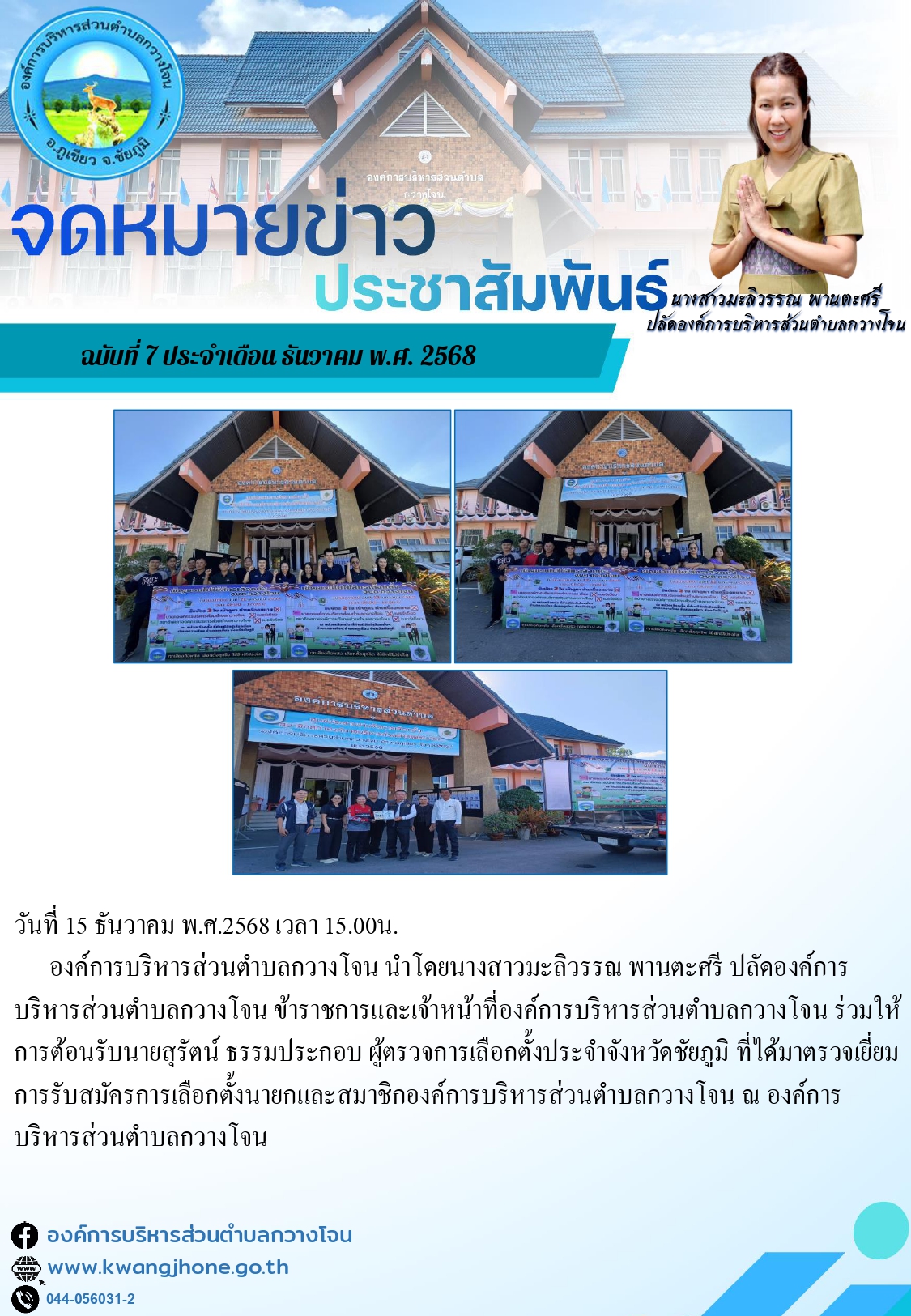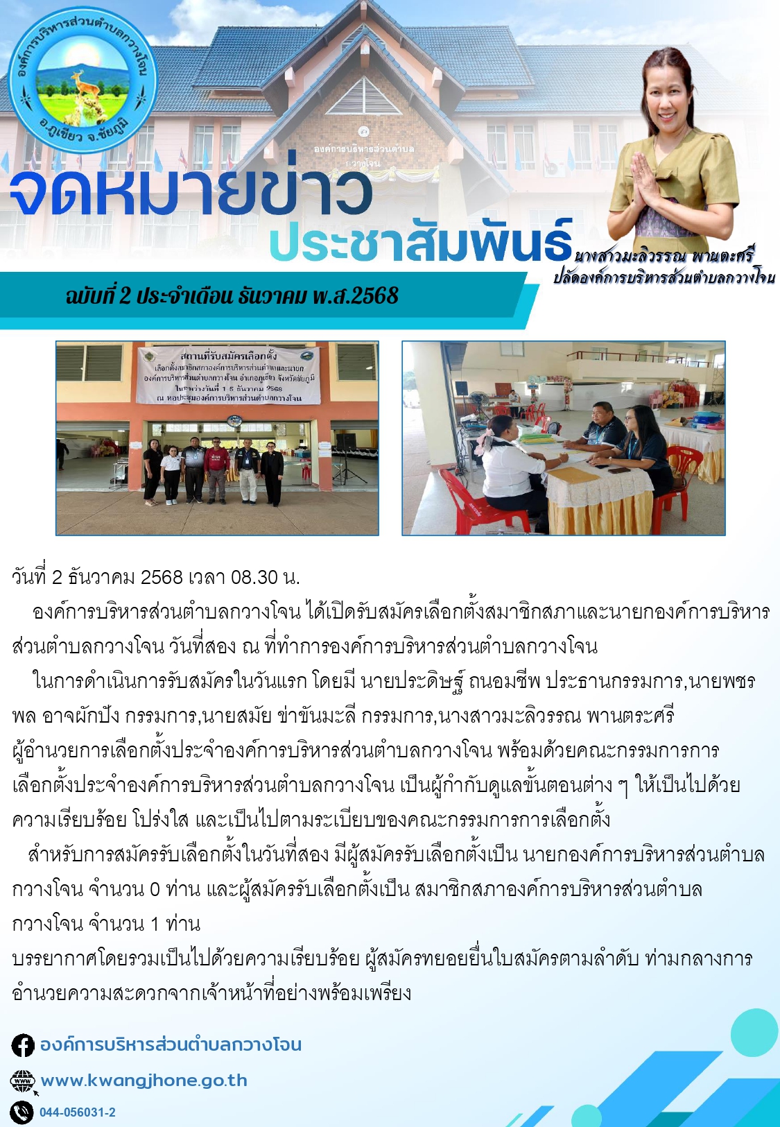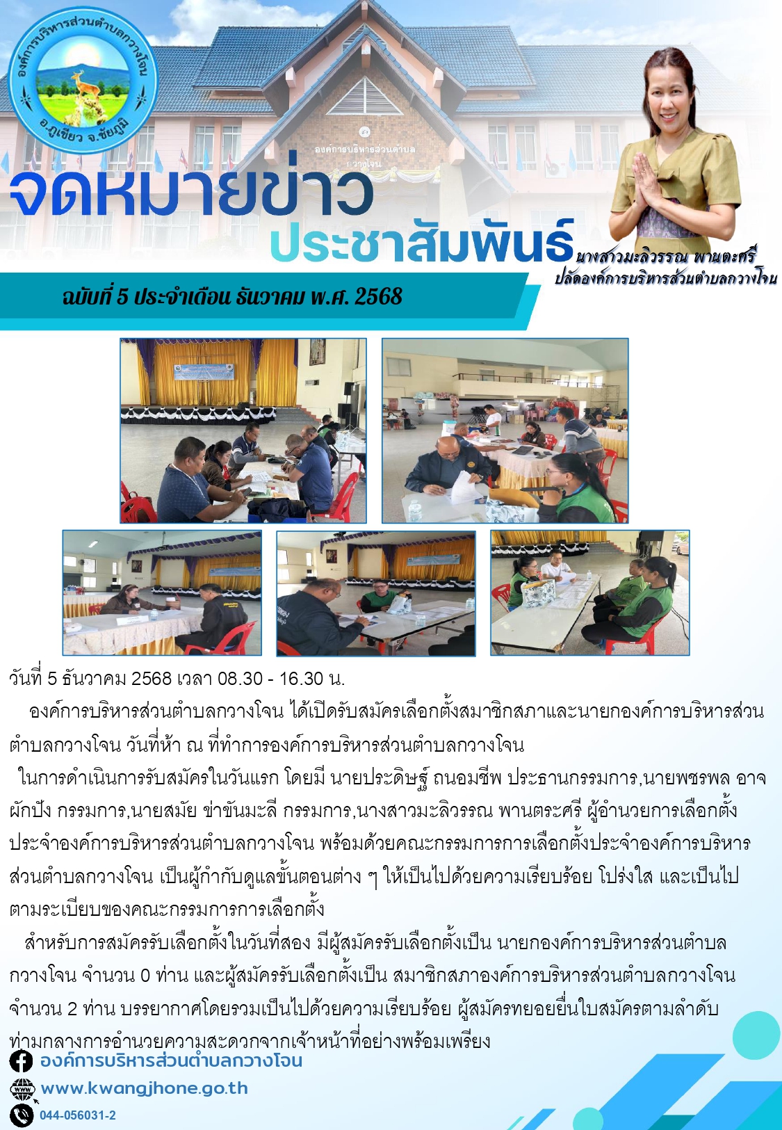 องค์การบริหารส่วตำบลกวางโจนเปิดรับสมัครเลือกตั้งสมาชิกสภาและนายกองค์การบริหารส่วนตำบลกวางโจน วันที่ห้า ณ ที่ทำการองค์การบริหารส่วนตำบลกวางโจน |