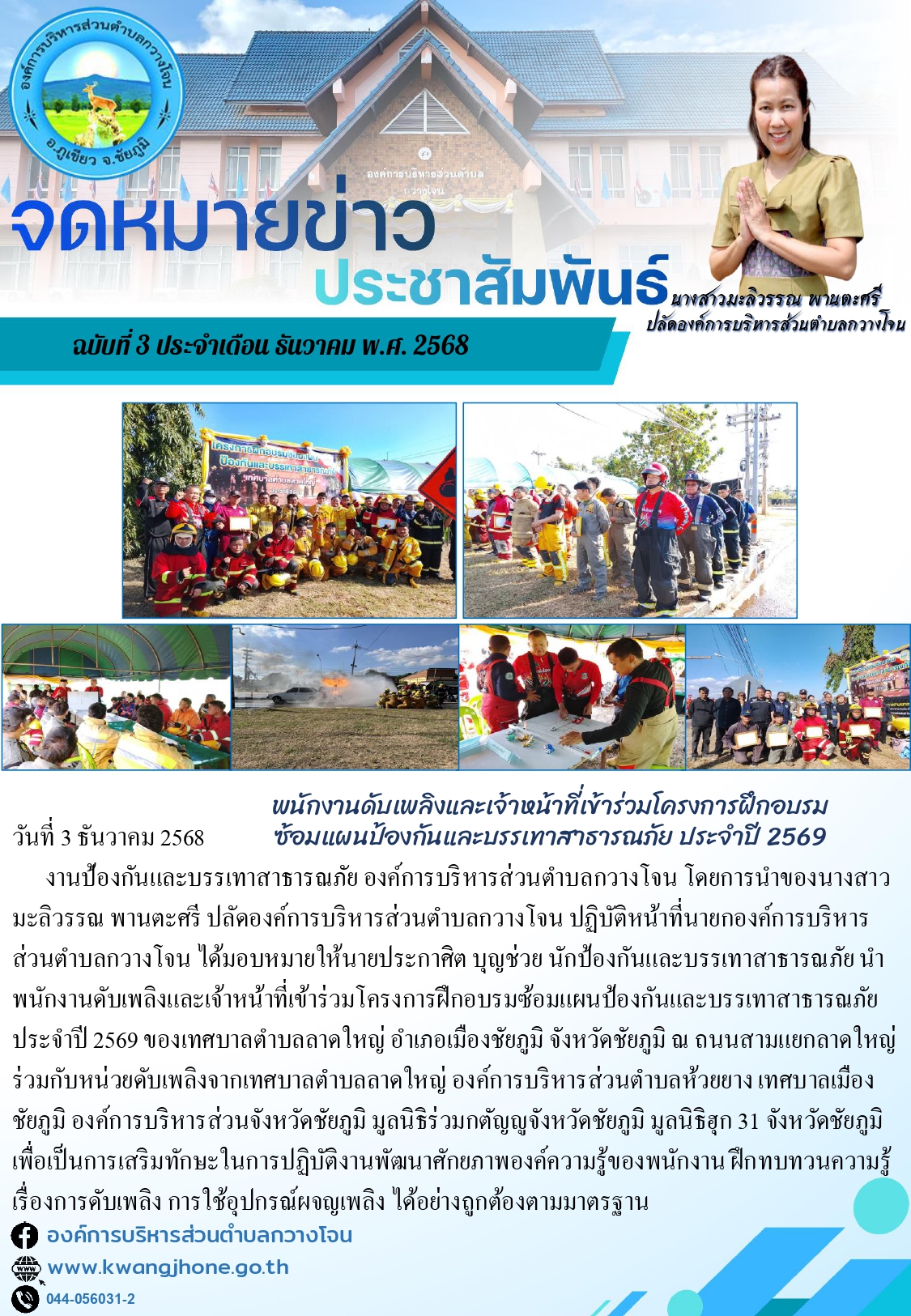 ให้การช่วยเหลือประชาชน กรณีเหตุอัคคีภัย รายงานจาก นาย สมุด ภิรมย์ญาณ บ้านเลขที่ 153 หมู่ที่ 9 บ้านสวนอ้อย ตำบลกวางโจน ณ ห้องประชุมองค์การบริหารส่วนตำบลกวางโจน ชั้น2 |