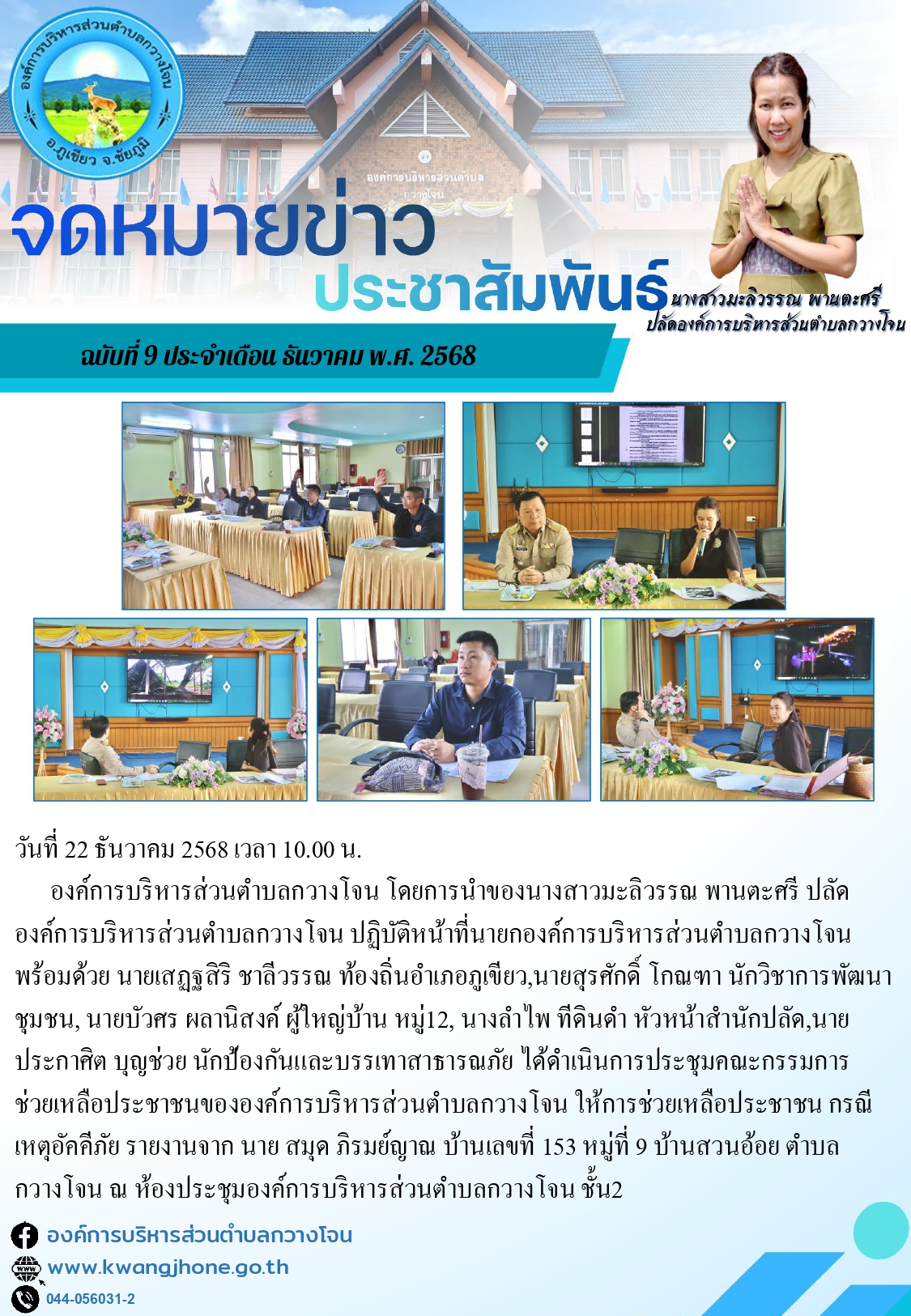 ดำเนินการประชุม ประจำเดือนธันวาคม ครั้งที่ 9/2568 ณ ห้องประชุมองค์การบริหารส่วนตำบลกวางโจน ชั้น 2 |