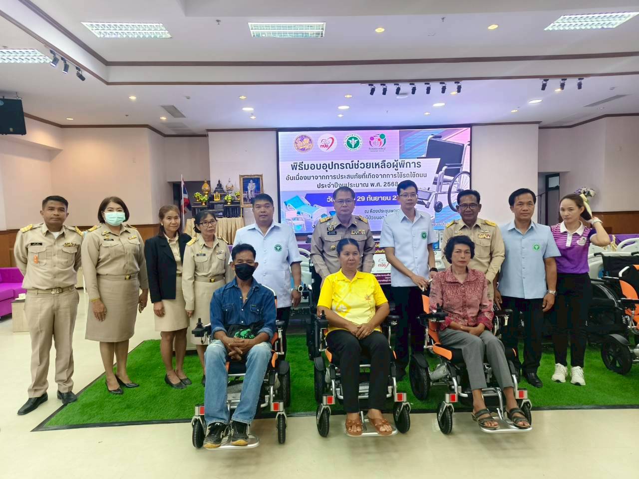 องค์การบริหารส่วนตำบลกวางโจน นำโดยนางพูมใจ ประทุมคำ นายก อบต.กวางโจน พร้อมด้วยคณะผู้บริหาร นางสาวมลิวรรณ พานตะศรี ปลัด อบต.กวางโจน ได้มอบหมายนายนิกร มาละ ผอ.กองสวัสดิการสังคม นายธีรเดช แผ่นทอง ผู้ช่วยเจ้าหน้าที่พัฒนาชุมชน ได้นำผู้พิการในตำบลกวางโจนจำนวนสองคน เข้ารับมอบอุปกรณ์ช่วยเหลือผู้พิการ อันเนื่องมาจากการประสบภัยจากการใช้รถใช้ถนน ประจำปี 2568 ณ โรงพยาบาลชัยภมิ โดยได้รับเกียรติจากท่านธงชัย โอฬารพัฒนะชัย รองผู้ว่าราชการจังหวัดชัยภูมิ ให้เกียรติเป็นประธานในพิธีมอบให้แก่ผู้พิการดังกล่าว