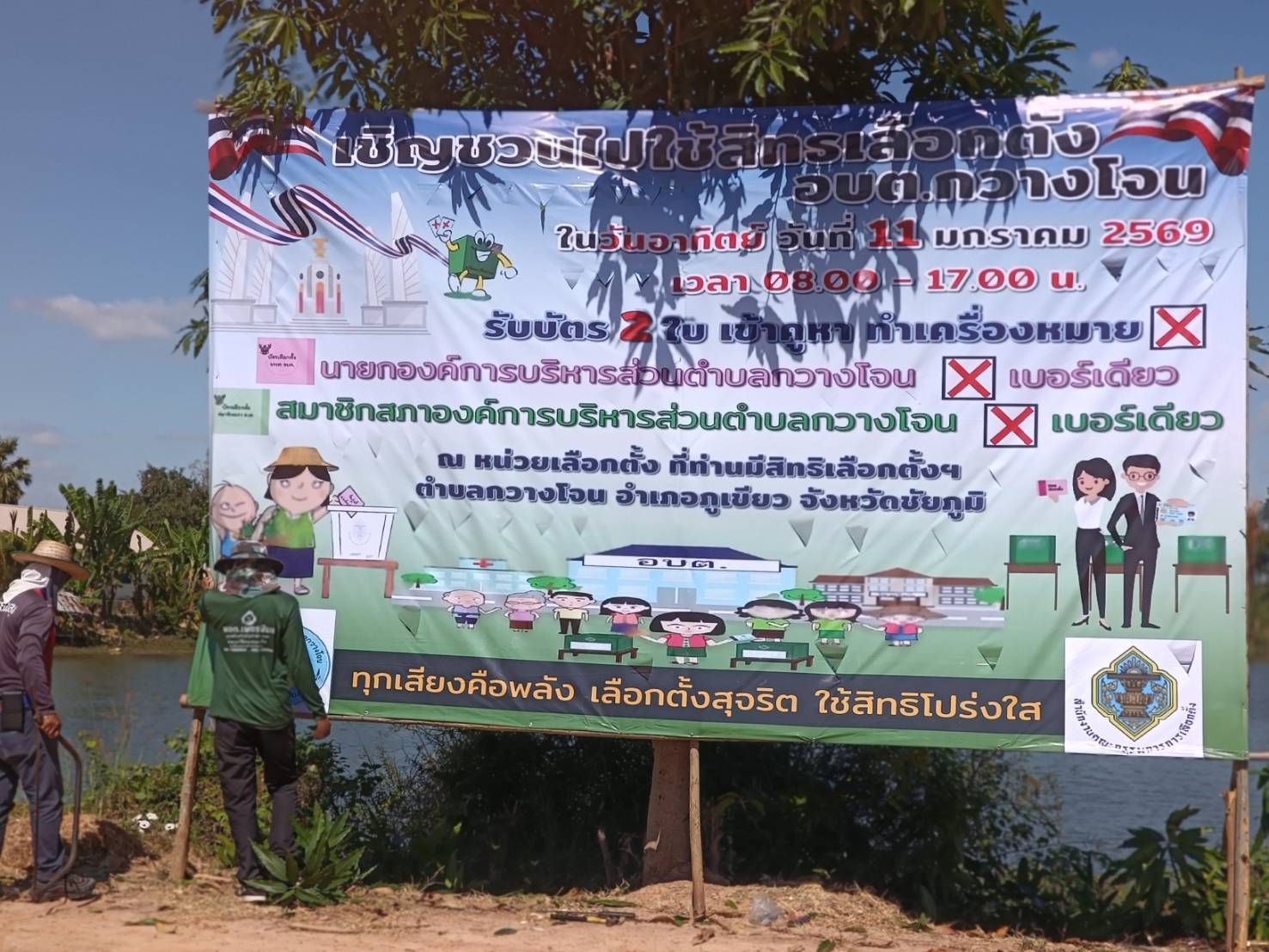 วันที่ 16 ธันวาคม 2568 องค์การบริหารส่วนตำบลกวางโจน โดยการนำของนางสาวมะลิวรรณ พานตะศรี ผู้อำนวยการการเลือกตั้งองค์การบริหารส่วนตำบลกวางโจน มอบหมายให้พนักงานเจ้าหน้าที่องค์การบริหารส่วนตำบลกวางโจน ออกติดตั้งป้ายประกาศการเลือกตั้ง