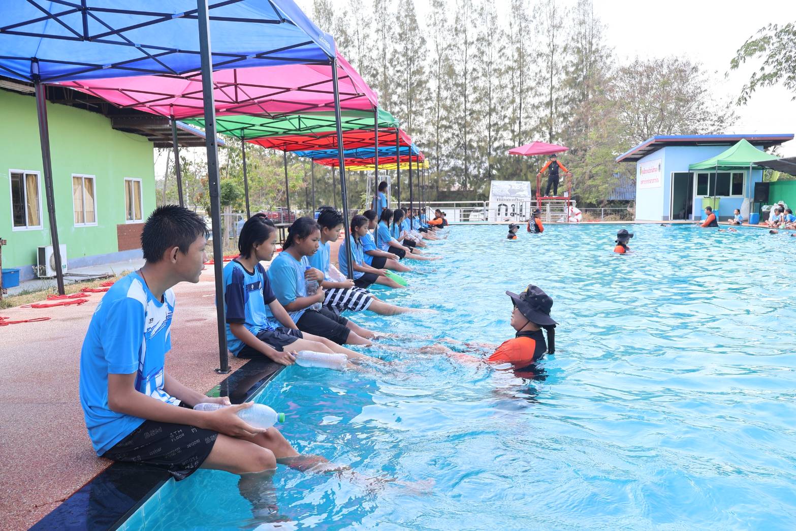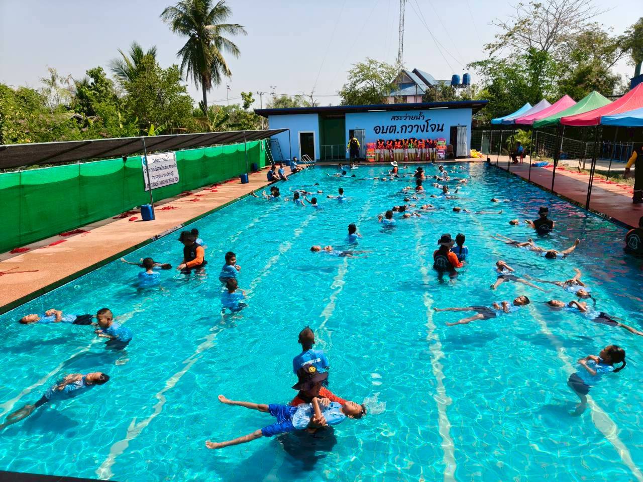 งานป้องกันและบรรเทาสาธารณภัย องค์การบริหารส่วนตำบลกวางโจน ได้จัดฝึกอบรมโครงการสร้างความปลอดภัยทางน้ำ แก่นักเรียนในสถานศึกษา ระดับชั้นประถมศึกษาปีที่ 1-6 พื้นที่ตำบลกวางโจน ประจำปีงบประมาณ 2569 ณ อาคารงานป้องกันและบรรเทาสาธารณภัย องค์การบริหารส่วนตำบลกวางโจน อำเภอภูเขียว จังหวัดชัยภูมิ โดยมีนายจักรพันธ์ เหล่ามะลึก นายกองค์การบริหารส่วนตำบลกวางโจน เป็นประธานในพิธีเปิดการฝึกอบรม พร้อมด้วยนายชนินทร์ บุตะเขียว เลขานุการนายกองค์การบริหารส่วนตำบลกวางโจน ,นางสาวมะลิวรรณ พานตะศรี ปลัดองค์การบริหารส่วนตำบลกวางโจน หัวหน้าส่วนราชการ พนักงานเจ้าหน้าที่ วิทยากร ครูฝึก องค์การบริหารส่วนตำบลกวางโจน การฝึกอบรมในครั้งนี้นางสาวรัตนพร เหล่าคนกล้า ผู้อำนวยการโรงเรียนบ้านหนองกุง พร้อมคณะครู นำนักเรียนโรงเรียนบ้านหนองกุง ชั้นประถมศึกษาปีที่ 1-6 เข้าร่วมฝึกอบรมให้ความรู้เกี่ยวกับ เรื่องของหลักความปลอดภัยทางน้ำ ฝึกปฏิบัติการเอาชีวิตรอดในน้ำ ฝึกปฏิบัติการช่วยเหลือผู้ประสบภัยทางน้ำ ฝึกปฏิบัติการช่วยฟื้นคืนชีพ (CPR) ภัยอันตรายจากการเล่นน้ำ โดยมีครูฝึก/วิทยากร จากผู้นำฝ่ายปกครอง กำนัน ผู้ใหญ่บ้าน อาสาสมัครป้องกันภัยฝ่ายพลเรือน อาสาสมัครสาธารณสุขประจำหมู่บ้าน และเครือข่ายเฝ้าระวังป้องกันการจมน้ำตำบลกวางโจน