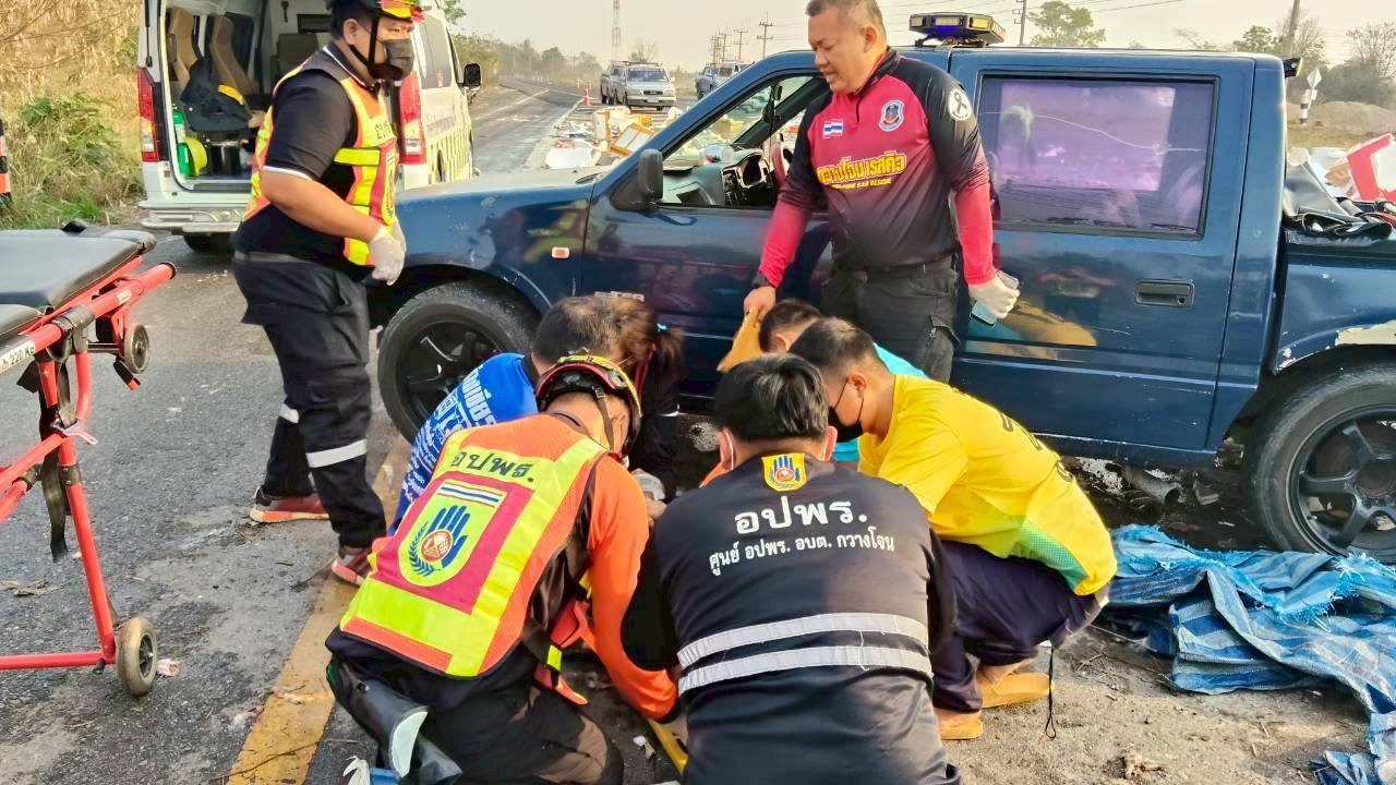 งานป้องกันและบรรเทาสาธารณภัย อบต.กวางโจน ได้รับแจ้งจากพลเมืองดี ว่ามีอุบัติเหตุรถยนต์กระบะเฉี่ยวชนรถสามล้อเครื่องและเสียหลักชนรถยนต์กระบะ รวมจำนวน 3 คัน บริเวณถนนทางหลวงหมายเลข 201 ก่อนถึงทางลาดขึ้นอุโมงค์บ้านหนองกุง ตำบลกวางโจน อำเภอภูเขียว จังหวัดชัยภูมิ ทำให้มีผู้ได้บาดเจ็บทั้งหมดจำนวน 4 ราย ติดภายใน 3 ราย ณ จุดเกิดเหตุ ทางเจ้าหน้าที่งานป้องกันและบรรเทาสาธารณภัย อบต.กวางโจน ได้จัดทีมนำรถพยาบาลพร้อมเครื่องตัดถ่างเข้าให้การช่วยเหลือผู้ได้รับบาดเจ็บ และอำนวยความสะดวกด้านการจราจรเนื่องจากจราจรติดขัด พร้อมทั้งประสานขออุปกรณ์เครื่องมือตัดถ่างเพิ่มเติมจากมูลนิธิกู้ภัยสว่างภูเขียว รถพยาบาลสนับสนุนจากเทศบาลตำบลธาตุทอง โรงพยาบาลภูเขียวเฉลิมพระเกียรติ สถานีตำรวจภูธรภูเขียว พร้อมทั้งทำความสะอาดผิวถนนเพื่อเปิดการจราจรสามารถให้เดินทางได้ตามปกติ