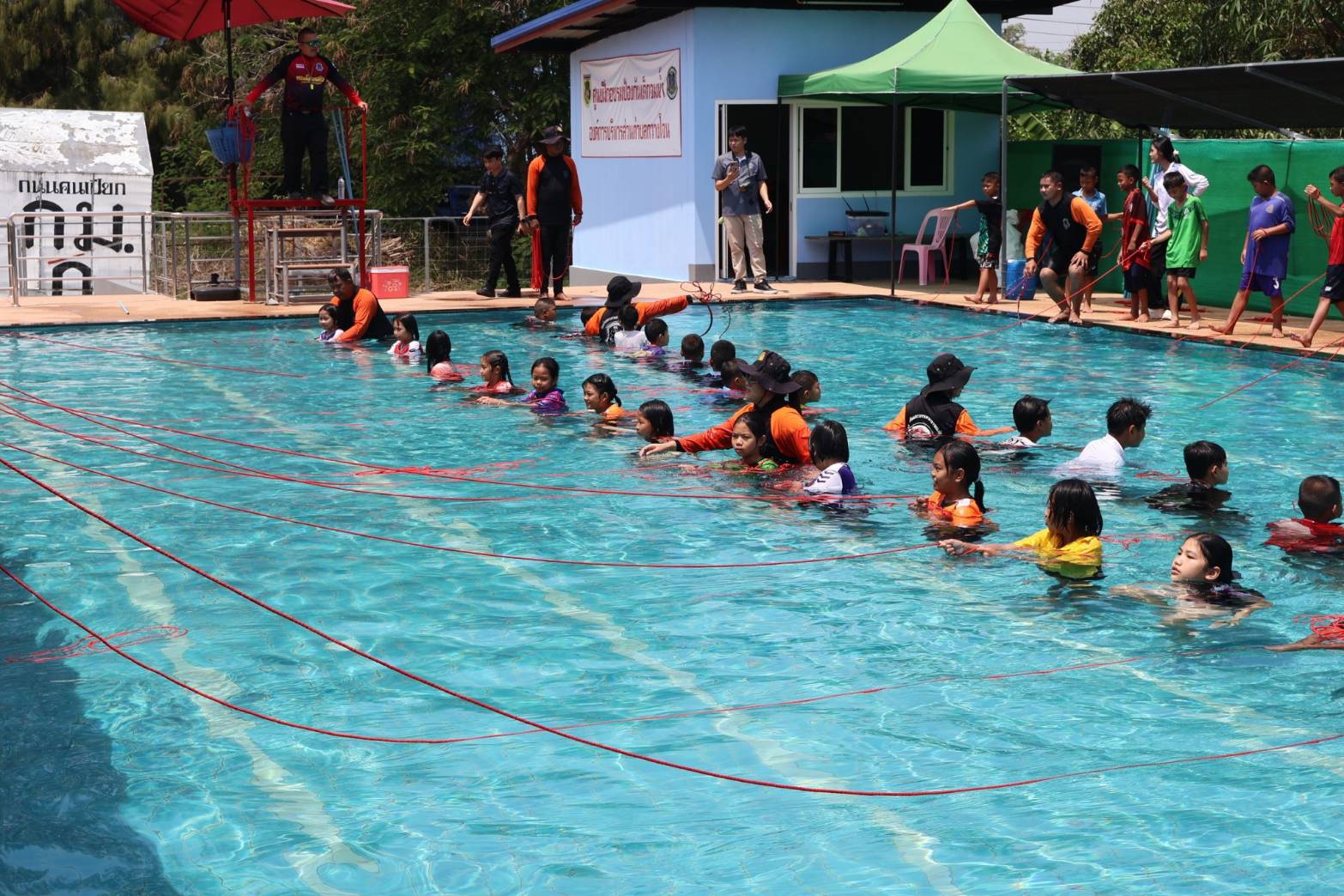 ศูนย์ฝึกอบรมการป้องกันเด็กจมน้ำ องค์การบริหารส่วนตำบลกวางโจน กวางโจนเพนกวิน ส่งเสริมความปลอดภัย เด็กไทยไม่จมน้ำ โดยการนำของ นายจักรพันธ์ เหล่ามะลึก นายกองค์การบริหารส่วนตำบลกวางโจน และนางสาวมะลิวรรณ พานตะศรี ปลัดองค์การบริหารส่วนตำบลกวางโจน ได้จัดทีมวิทยากรให้ความรู้เกี่ยวกับการป้องกันเด็กจมน้ำ ณ ศูนย์ฝึกป้องกันเด็กจมน้ำ องค์การบริหารส่วนตำบลกวางโจน ซึ่งทางสำนักงานเขตพื้นที่การศึกษาประถมศึกษาชัยภูมิ เขต 2 ได้จัดโครงการอบรมเชิงปฏิบัติการฝึกทักษะชีวิตและการป้องกันภัยทางน้ำ ภายใต้หลัก “ตะโกน โยน ยื่น” ประจำปี 2569 ซึ่งมีนายอภิชัย ซาซุม ผู้อำนวยการสำนักงานเขตพื้นที่การศึกษาประถมศึกษาชัยภูมิ เขต 2 เป็นประธานในพิธีเปิดโครงการฝึกอบรม พร้อมด้วยหัวหน้าส่วนราชการของสำนักงานเขตพื้นที่การศึกษาประถมศึกษาชัยภูมิ เขต 2 โดยนายจักรพันธ์ เหล่ามะลึก นายกองค์การบริหารส่วนตำบลกวางโจน พร้อมด้วยคณะผู้บริหาร หัวหน้าส่วนราชการพนักงานเจ้าหน้าที่ ขององค์การบริหารส่วนตำบลกวางโจน ร่วมให้การต้อนรับในการฝึกอบรม ทำการฝึกอบรมให้ความรู้ให้นักเรียน ทั้งหมด 16 โรงเรียน ในสังกัดสำนักงานเขตพื้นที่การศึกษาประถมศึกษาชัยภูมิ เขต 2 จำนวน 96 คน ในเรื่องของหลักความปลอดภัยทางน้ำ ฝึกปฏิบัติการเอาชีวิตรอดในน้ำ ฝึกปฏิบัติการช่วยเหลือผู้ประสบภัยทางน้ำ ฝึกปฏิบัติการช่วยฟื้นคืนชีพ (CPR) โดยทีมครูฝึก/วิทยากร จากเครือข่ายป้องกันการจมน้ำตำบลกวางโจน